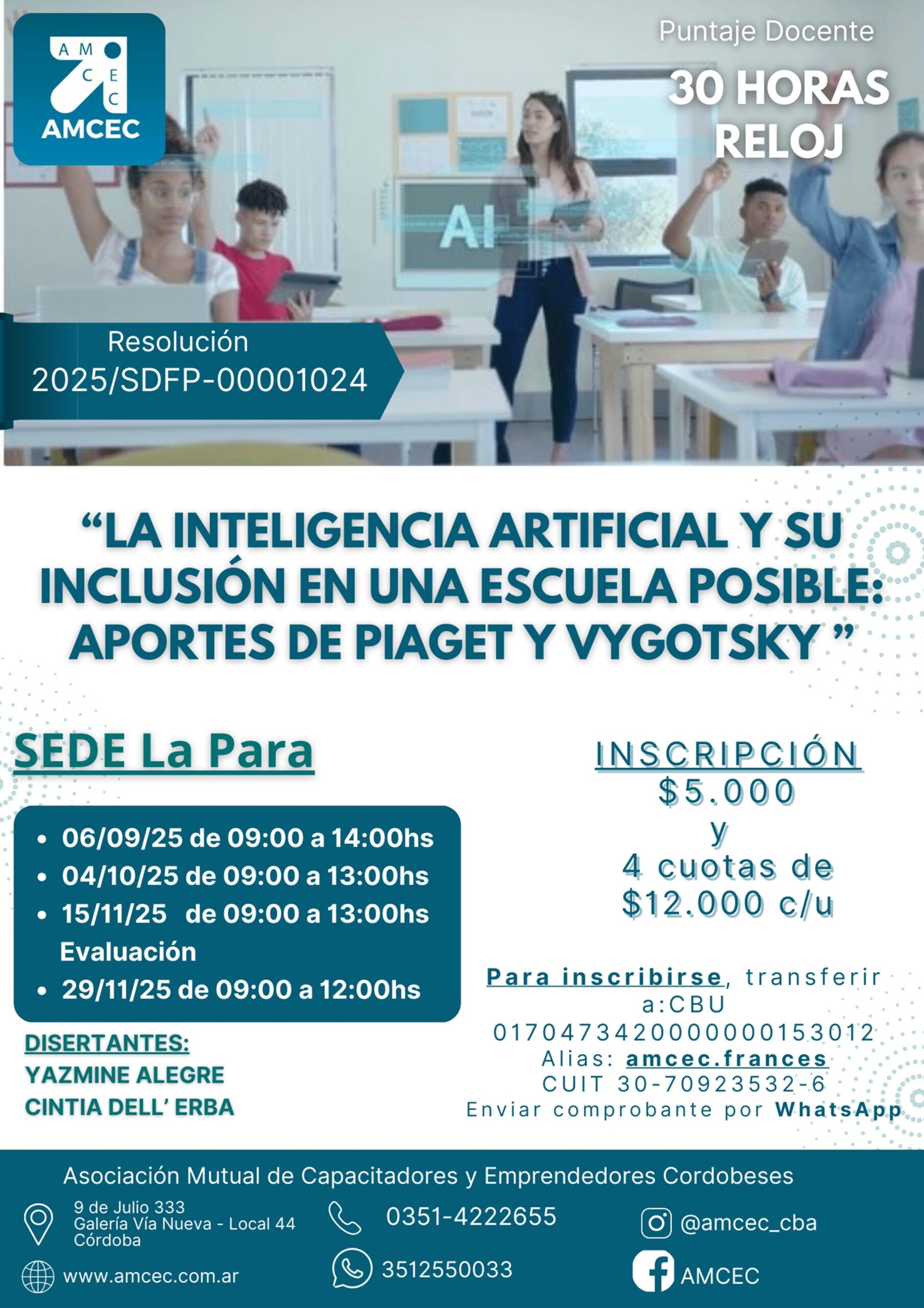 La Inteligencia Artificial y su Inclusión en una Escuela Posible: Aportes de Piaget y Vygotsky plantea un análisis sobre cómo la IA puede integrarse en la educación desde una mirada crítica y pedagógica. Se destacan los aportes de Piaget y Vygotsky para comprender el aprendizaje como construcción social y cognitiva, promoviendo un uso responsable, inclusivo y formativo de la tecnología en la escuela.
